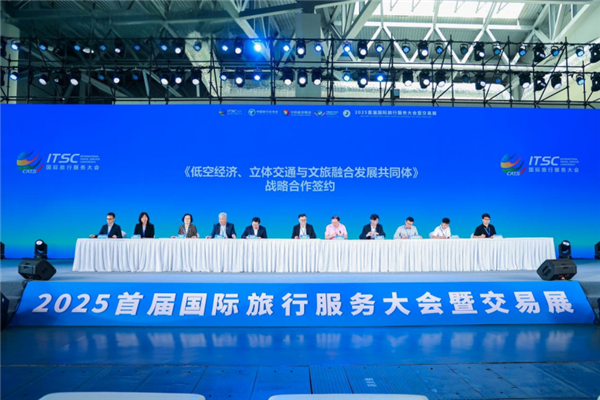 值得一提的是,2025首届国际旅行服务大会暨交易展,以“自贸港芯动 文旅新蓝海为主题,汇聚了来自全球20余个国家和地区的200余家资源商参展,展览面积达1.2万平方米,吸引近2000家企业参与。中国旅行社协会航空旅游分会与中国航空产教融合创新联合体联合打造了低空经济与交旅融合专题展区,集中呈现了产业链上下游的创新成果。