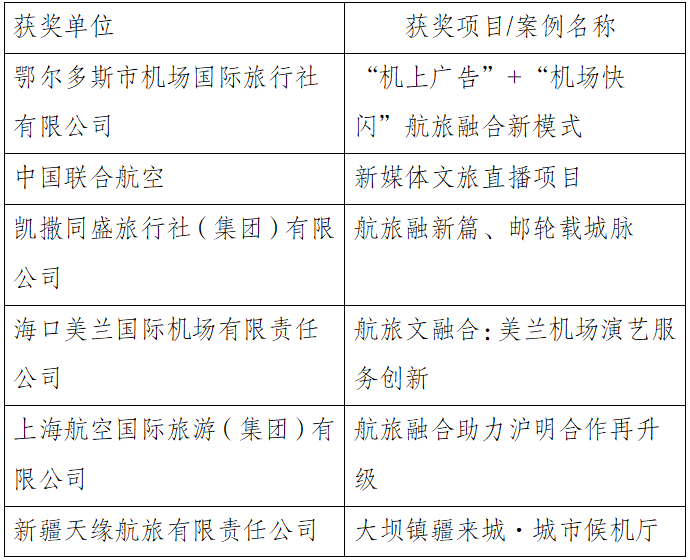 其中,鄂尔多斯市机场国际旅行社凭借“‘机上广告+机场快闪’创新模式”赢得认可,中国联合航空的“新媒体文旅直播项目”与海口美兰国际机场的“演艺服务创新”案例也双双获评。本届共评选出十大精品案例与一项履责担当案例,完整名单如下: