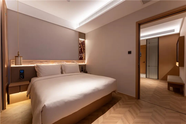 客房以素雅商务风格为基调,配备智能客控系统、高品质产品及定制家具,兼顾实用与舒适。同时,酒店配套功能设施齐全,早餐厅、会议室、健身房、自助洗衣房、棋牌室等,充分满足客户的多元需求。