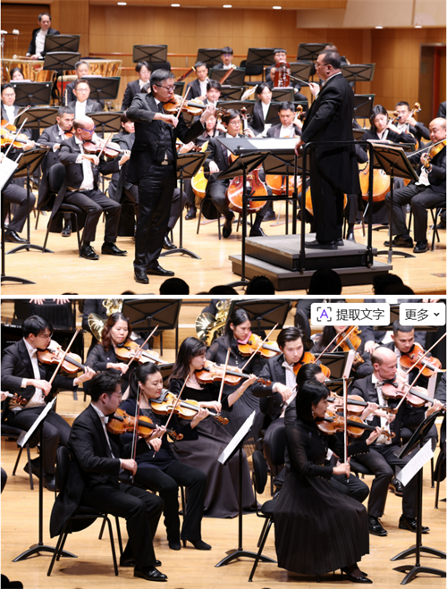 演出伊始,乐团先后奏响泰国国歌《圣颂歌》与中国国歌《义勇军进行曲》,雄浑庄重的旋律在音乐厅中回荡,全场观众肃然起立,致以崇高敬意。随后那隆⽴・达⻢布特拉的《暹罗⾳画》展开,这首充满现代感的泰国作品,通过音符描绘出泰国自然与文化的多彩画卷。⼩提琴协奏曲《内弗蕾塔》由泰国公主希⾥婉⽡丽创作,作品融合了西方古典音乐的优雅,并充分展现了泰国美学的独特气质。上半场最后一曲为中国经典作品《我的祖国》,两国艺术家充满感情的演绎,用音乐表现了中华儿女的家国情怀。音乐引发观众强烈共鸣,掌声热烈不断。