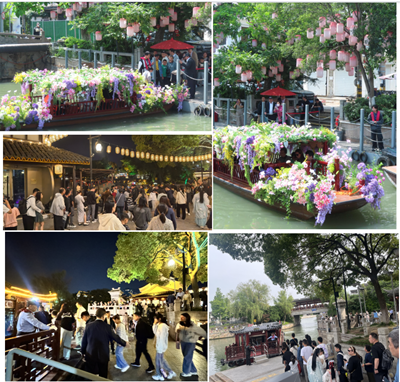 以国庆假期为例,苏州的甪直、周庄、同里等古镇,通过“非遗+夜游”、“演艺+科技”等融合创新,打造出独具魅力的夜间体验,成功吸引了大量年轻及国际客群。这些实践连同“苏州文旅×王者荣耀”数字IP联动、苏州荷花市集——江南诗意新表达文旅融合创新实践等国内创新案例,共同体现了苏州文旅在活化传统、跨界融合上的系统思维与全局影响力。