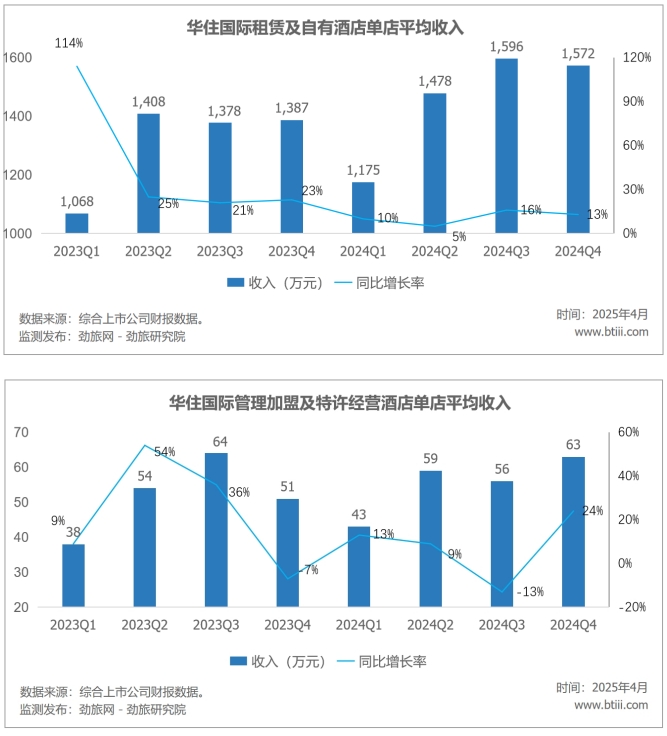 华住国际租赁及自有酒店单店平均收入1572万元,同比增长13%。华住国际管理加盟及特许经营酒店单店平均收入63万元,同比增长24%。