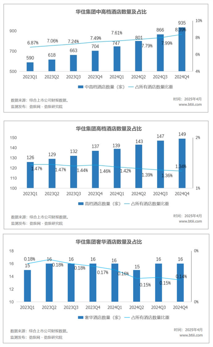 进入2025年随着国际国内形势纷繁演变及新酒店供给仍在较快增加的背景下,预计华住集团三项主要指标“舍二保一”的策略若想实现将更加艰难,三项指标均有下降的可能性在加大,或将进入“不可能三角”发展阶段。