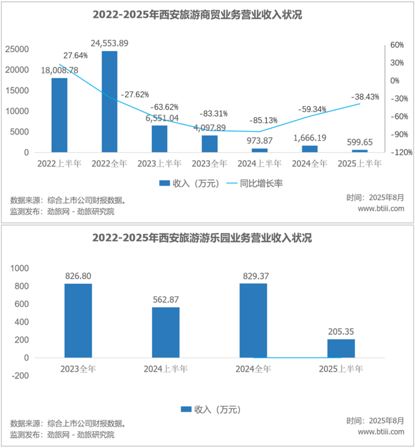 第二季度,商贸业务实现营业收入599.65万元,上年同期为973.87万元,同比下降38.43%。游乐园业务实现营业收入205.35万元,上年同期为562.87万元。