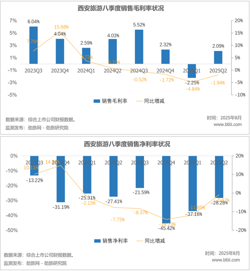 第二季度,西安旅游销售毛利率2.09%,上年同期为4.03%,同比下降1.94个百分点。销售净利润-28.28%,上年同期为-27.41%,同比下降0.87%个百分点。