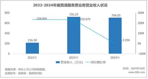2024年,瘦西湖主营业务中,游船业务、观光车业务、服务费分别占营业收入85.52%、8.22%、6.27%。