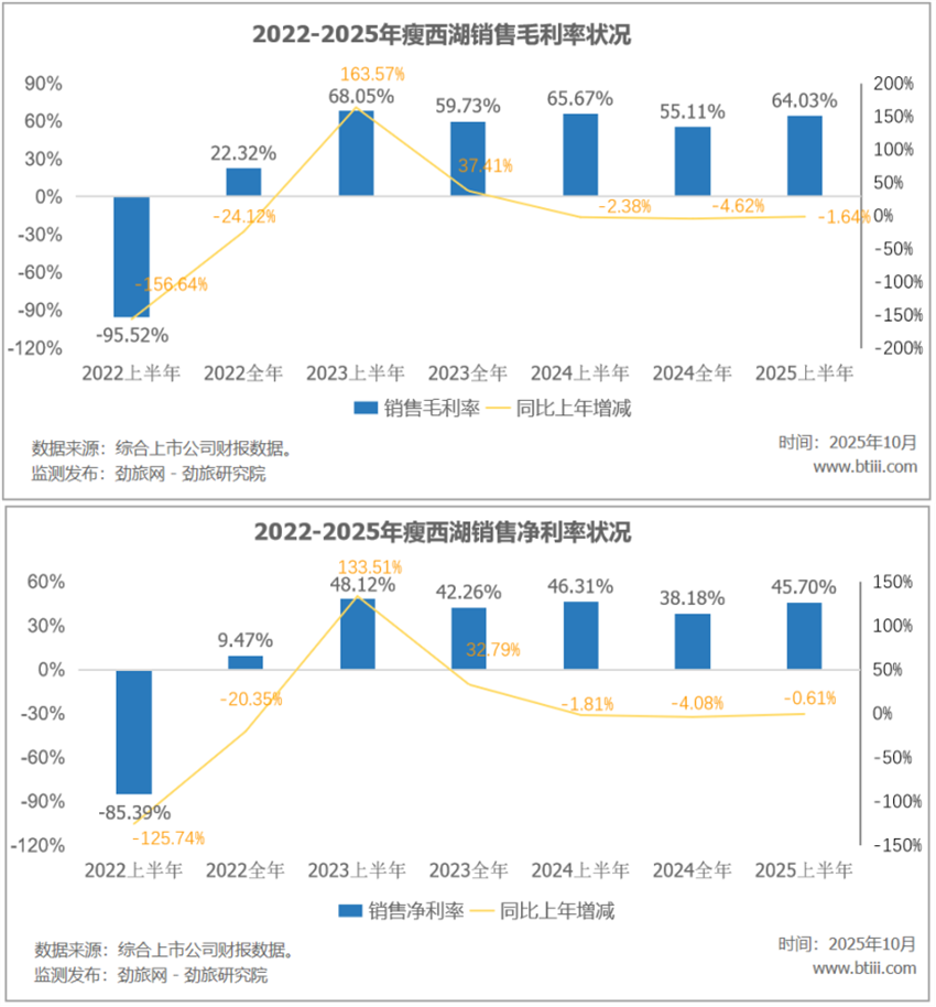 此外,上半年瘦西湖销售毛利率64.03%,比上年下降1.64个百分点。销售净利率45.70%,比上年下降0.61个百分点。